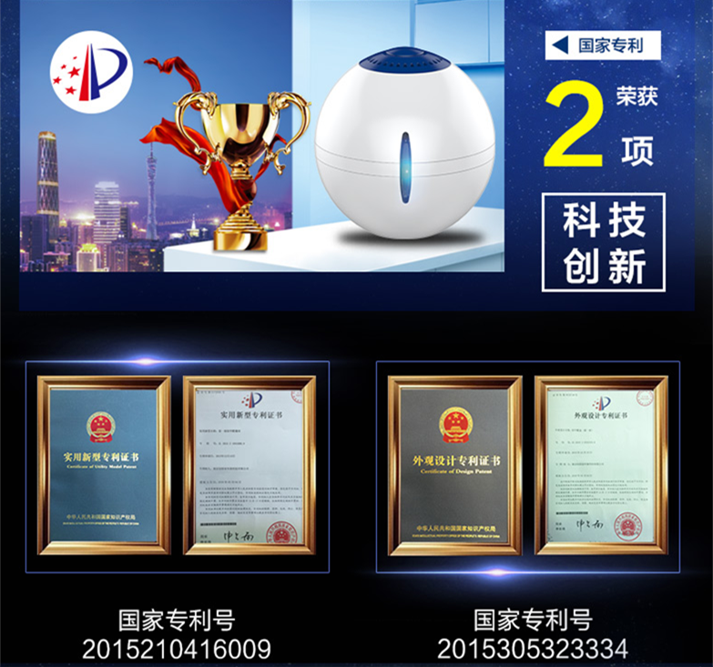創綠家環保科技旗下明星產品搖一搖除甲醛魔球榮獲2項國家專利,并以小巧、實用、高效、方便的特征獲得廣大消費者的喜愛。