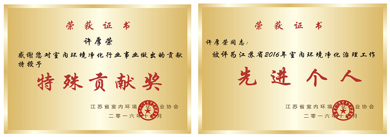 創綠家環??萍技夹g總監、南京分公司負責人許厚榮先生也因此獲得了多項殊榮。